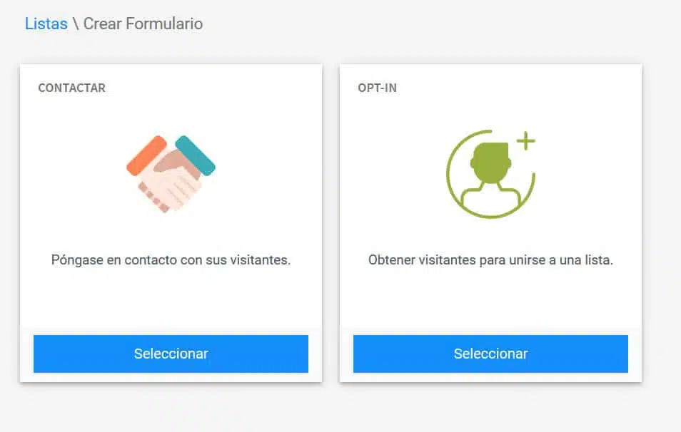 Para poder crear una lista, el primer paso es seleccionar el funnel sobre el que queremos aplicarlo. Después debemos seleccionar que tipo de formulario deseamos utilizar. Disponemos de 2 modelos.